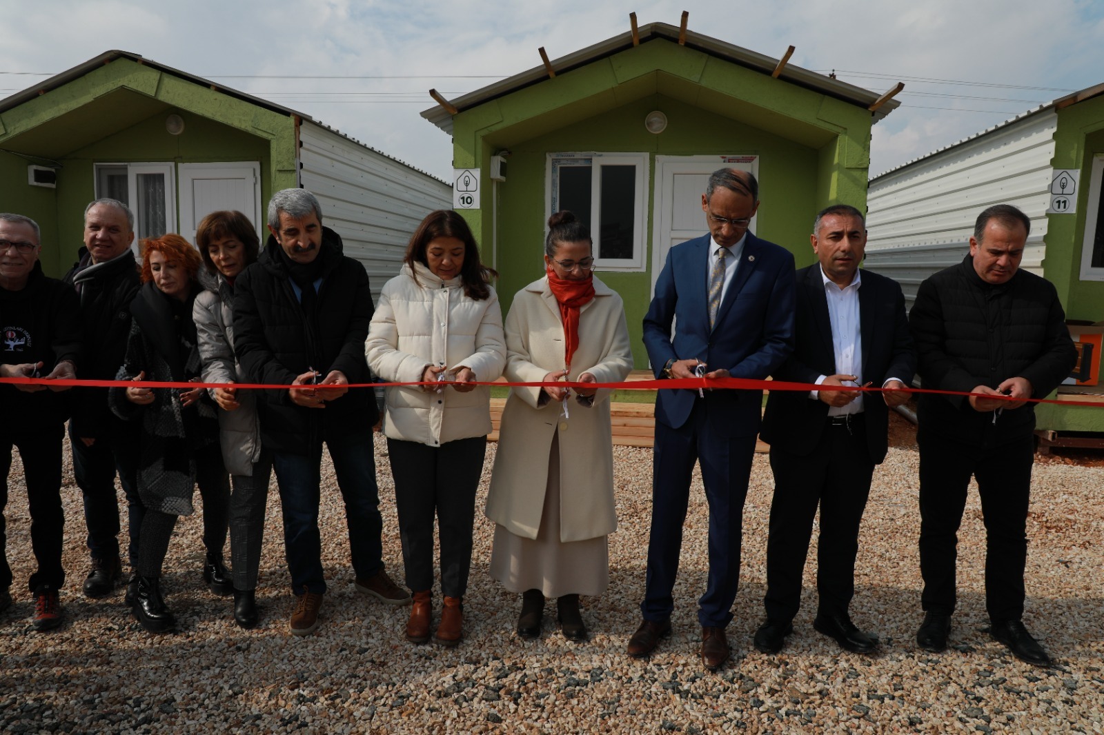 Defne Belediyesine ait yeşil alanda kurulan 18 ahşap ev, yalnız ve çocuklu kadınlar, engelliler ve yaşlılara teslim edildi.