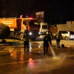 Hatay’ın tüm ilçelerinde eş zamanlı cadde, sokak temizleme ve yıkama çalışmalarını sürdüren HBB ekipleri, Dörtyol ilçesinde gece mesaisi gerçekleştirdi.