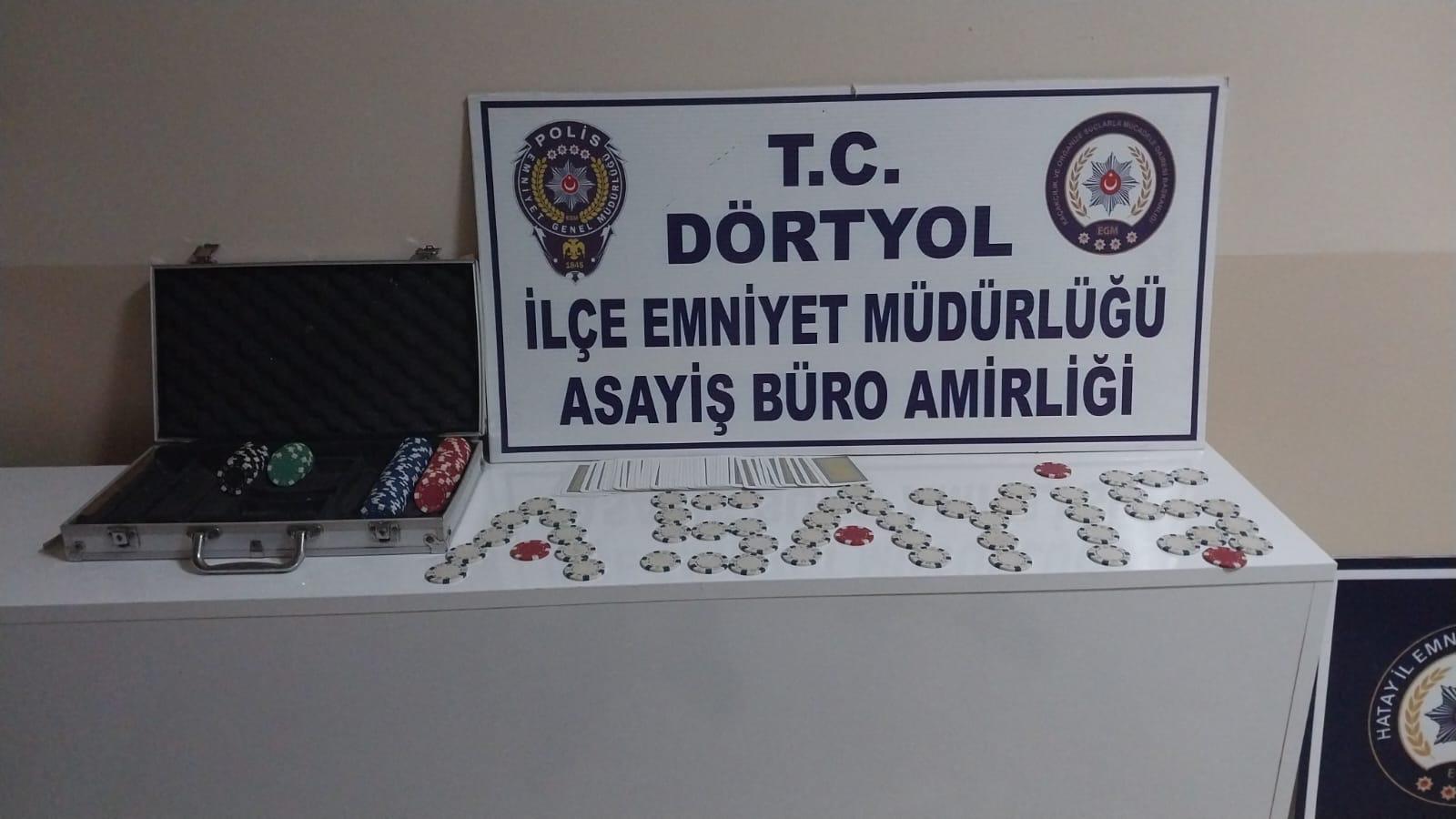 Hatay Valiliğinden yapılan açıklamada, Hatay Emniyet Müdürlüğü görevlilerince Kumar oynanması için yer ve imkan sağlama suçlarıyla mücadele kapsamında  19.01.2024 günü Dörtyol Özerli Mahallesinde bir İş yerinde yapılan kontrollerde; 166 adet pul ve iskambil kağıtları  ele geçirildiği belirtildi.