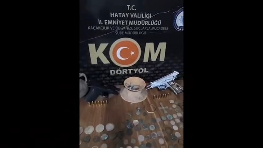 Valilik açıklamasında, ayrıca yapılan aramalarda 2 kuyumcudan; 2 adet ruhsatsız tabanca, 13 adet fişek, 196 adet Roma, Bizans ve İslami dönemlere ait Sikke, 26 adet çeşitli dönemlere ait obje ve 27 adet çeşitli dönemlere ait altın para ve obje ele geçirildiği ifade edildi.