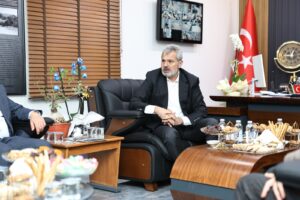 Hatay Büyükşehir Belediyesi Başkanı Mehmet Öntürk, Arsuz’da gerçekleştirdiği ziyaretler kapsamında Arsuz Belediye Başkanı Sami Üstün’ü makamında ziyaret etti.