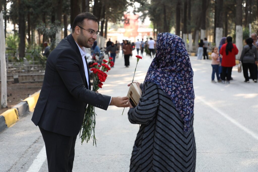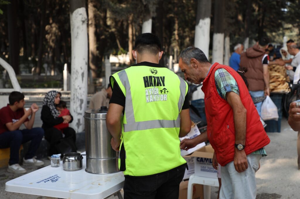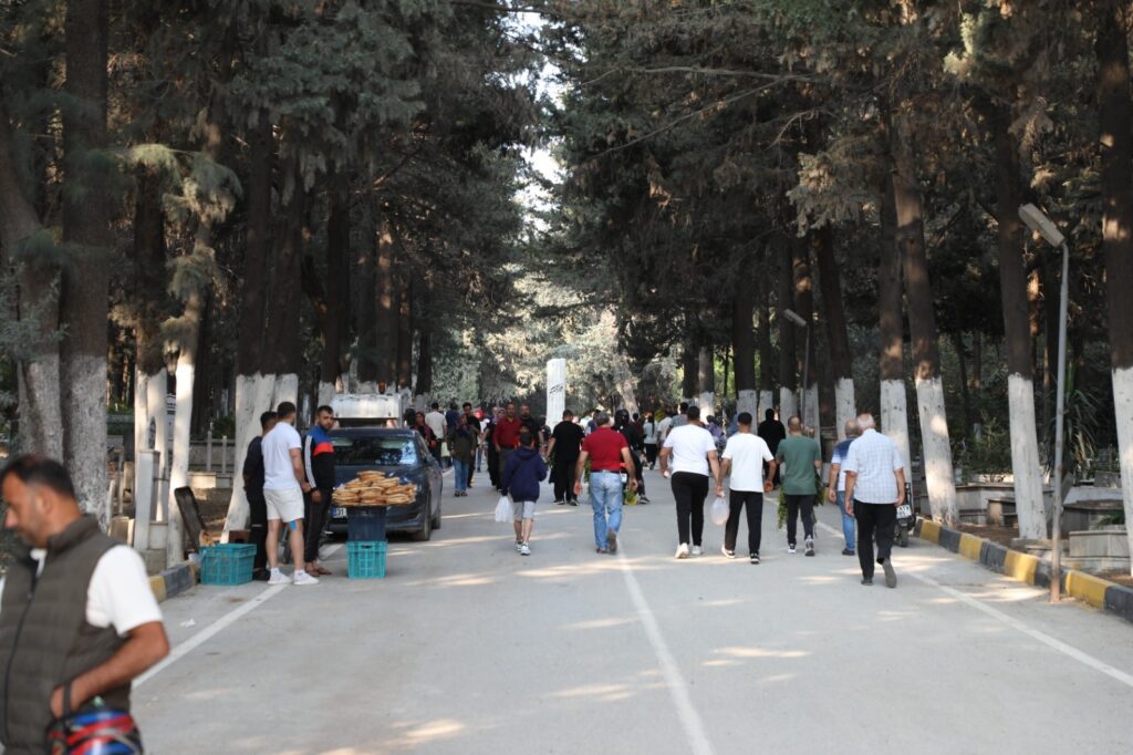 Kurban Bayramı’nın ilk günü ziyaret yoğunluğu yaşayan Antakya Asri Mezarlığı’na gelen vatandaşlar kapıda Hatay Büyükşehir Belediyesi personellerinin ikramlarıyla karşılandı ve ziyaretçilerin bayramı kutlanarak çiçek verildi.