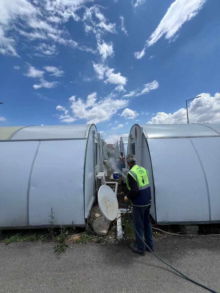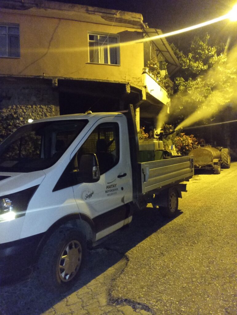 Hatay Büyükşehir Belediyesi ekipleri 68 araçlık ilaçlama filosuyla konteyner kentlerden fabrikalara, su kanallarından derelere, foseptik çukurlardan rögarlara, kamunun ortak kullanım alanlarından resmi kurumlara kadar birçok alanda larva, fare ve haşerelere karşı çalışarak detaylı müdahalelerde bulundu.