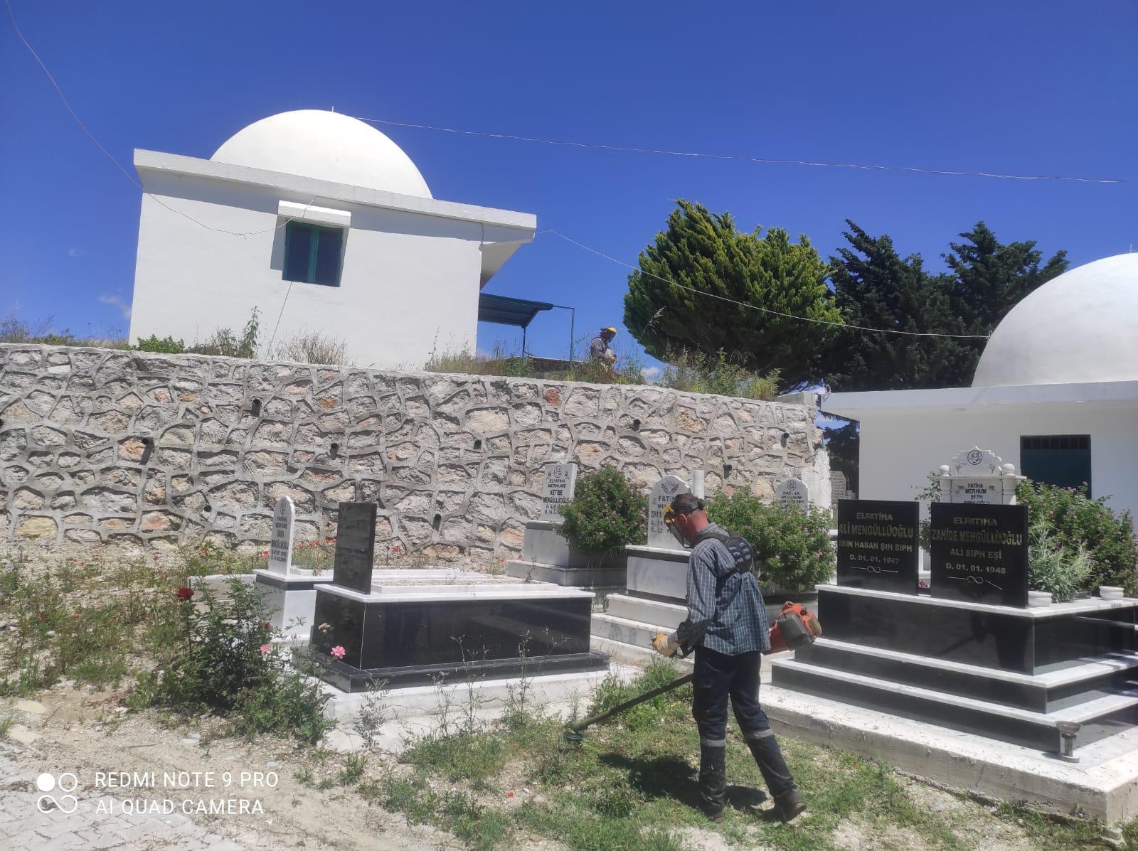 Vatandaşların daha temiz ve güvenli bir ortamda kabir ziyaretlerini gerçekleştirmeleri için titiz bir çalışma yürüten Büyükşehir ekipleri, mezarlıklarda çim biçme, ağaç budama, yabani ot ve çevre temizliği yapıyor.