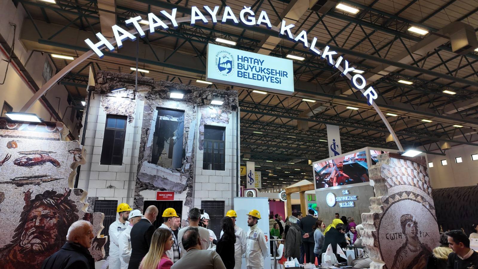 Hatay BüyükşehirBelediyesi, 6 Şubat 2023’te yaşanan büyük depreme atıfta bulunarak tasarlanan standı ile Hatay’ın toparlanma sürecini de gözler önüne sererek farkındalık yarattı.