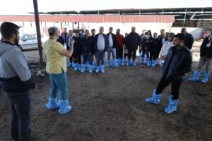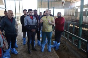 Aşılama, parazitle mücadelelerden ve besleme gibi işlemlerin nasıl olduğuyla ilgili bilgileri aktaran uzman veterinerler, sahada kursiyerlerle birlikte teorik olarak anlattıklarını uygulamalı olarak gösterdi.
