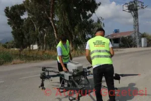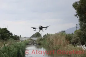 Sinek ve haşerelerin üremesine elverişli noktalarda çalışmalarını sürdüren ekipler, karadan ulaşılamayan bölgelerde drone ile ilaçlama yapıyor.