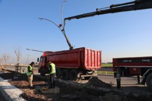 Hatay Büyükşehir Belediyesi  Park Bahçe ve Yeşil Alanlar Dairesi Başkanlığı, havaalanı yolunda kapsamlı bir çalışma gerçekleştiriyor. Bu kapsamda yol güzergahı boyunca toplam 116 adet aydınlatma direğinin montajı devam ederken, bölgenin enerji altyapısı güçlendiriliyor.