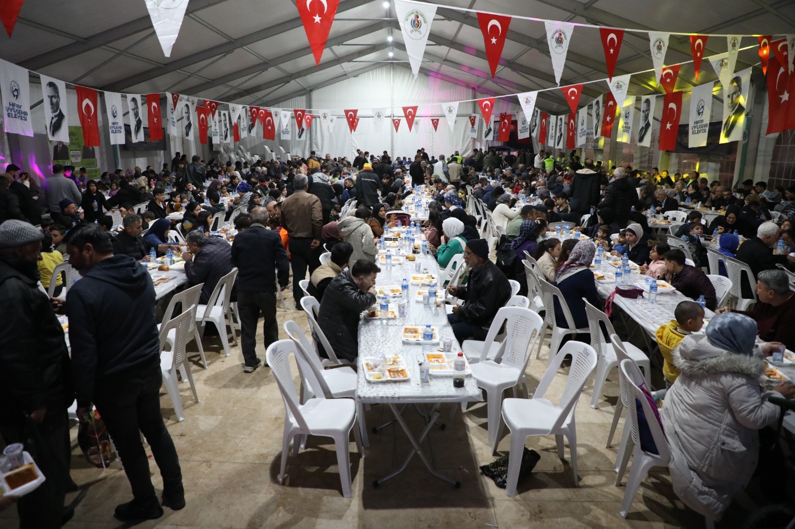 Hatay Büyükşehir Belediyesi Kültür ve Sosyal İşler Dairesi, Sağlık ve Sosyal Hizmetler Dairesi Başkanlıkları Reyhanlı Belediyesi önünde iftar programı düzenledi.