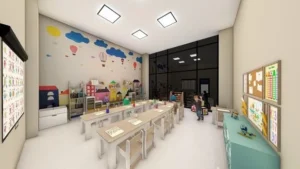 Yapımına başlanan kreşin içerisinde; tuvaletler, temizlik odası, ısıtma merkezi, dört sınıf, yemekhane, mutfak, etkinlik odası, uyku ve oyun alanının yanı sıra ofis yer alacak.