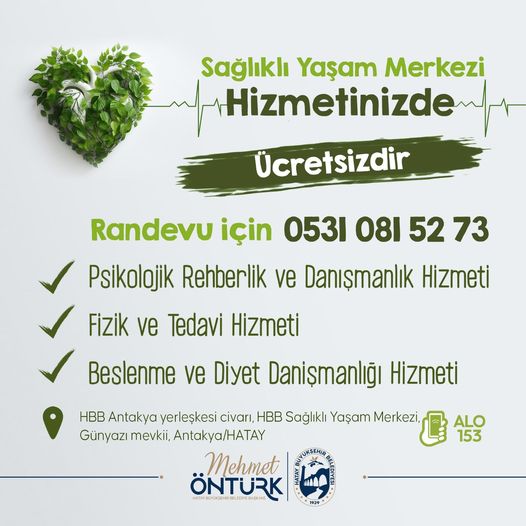 Hatay Büyükşehir Belediyesi yetkilileri Sağlıklı Yaşam Merkezi’nden faydalanabilmek için 0531 081 5273 veya ALO 153 numaralı hatlarından randevu alınabileceğini belirtti.
