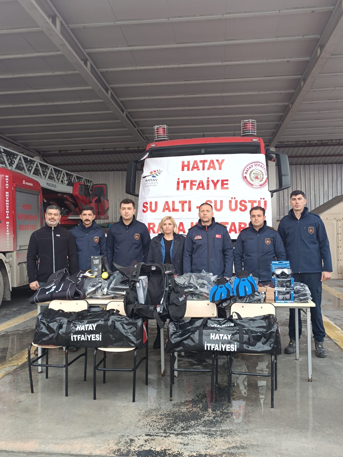 Hatay Büyükşehir Belediyesi İtfaiye Daire Başkanlığı, 6 Şubat depremlerinde enkaz altında kalarak zarar gören su altı ve su üstü ekipmanlarını yeniden tedarik etti.