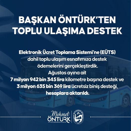 Hatay Büyükşehir Belediyesi, 7 milyon 942 bin 345 liralık Ağustos ayı kilometre başına destekleme ödemesi ile Ağustos ayı ücretsiz biniş desteği ödemesi olan 3 milyon 635 bin 369 liranın EÜTS’ye dahil olan toplu ulaşım esnafının hesaplarına aktardı.