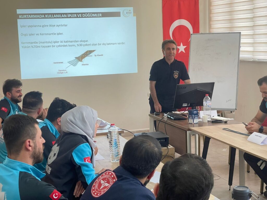 Afet anlarında daha hızlı ve etkili müdahale sağlamak amacıyla düzenlenen eğitimlerde, teorik bilgilerin yanı sıra sahada yapılan uygulamalarla arama-kurtarma becerileri pekiştirildi.
