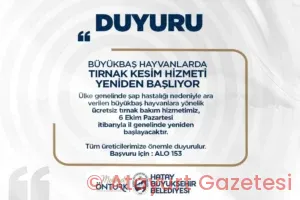 Hatay büyükşehir Belediyesi yetkilileri, tırnak bakımının büyükbaş hayvanlar için büyük öneme sahip olduğunu belirtirken başvuruların ALO 153 hattından yapılacağını ifade etti.
