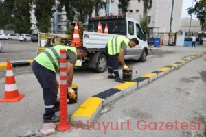 Öğrencilerin güvenliğini ön planda tutan Hatay Büyükşehir Belediyesi ekipleri, okul servislerinin giriş-çıkış noktalarını yenileyerek düzenli alanlar oluşturuyor.