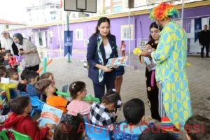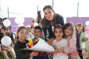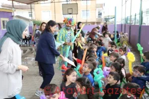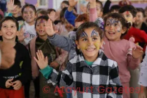 Hatay Büyükşehir Belediyesi ekipleri tarafından yüzleri boyanan ve balon hediye edilen çocukların mutlulukları yüzlerine yansıdı. Okul idarecileri bu güzel etkinlik dolayısıyla Büyükşehir personeline çiçek hediye etti.