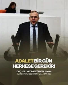 Saadet Partisi Hatay Milletvekili Doç. Dr. Necmettin Çalışkan, TBMM Genel Kurulu’nda yaptığı konuşmada, Türkiye’nin adalet krizine dikkat çekti.