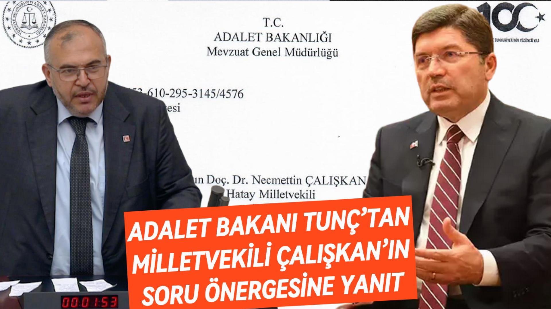 Adalet Bakanı Yılmaz Tunç, Hatay Milletvekili Doç. Dr. Necmettin Çalışkan’ın soru önergesini yanıtladı. Bakan Yılmaz Tunç yanıtladığı soru önergesinde; AİHM başvuruları, yargı bağımsızlığı ve Bakanlığın görevleri hakkında önemli açıklamalarda bulundu.