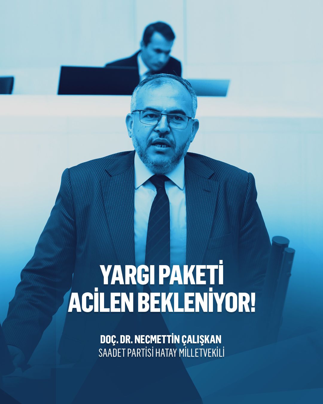 TBMM Genel Kurulu’nda konuşan Saadet Partisi Hatay Milletvekili Doç. Dr. Necmettin Çalışkan, Meclis’in asli görevini yerine getirmediğini belirterek, milyonların beklediği düzenlemelerin ertelendiğini, önceliğin ise yalnızca üst düzey bürokratların özlük haklarına verildiğini söyledi.