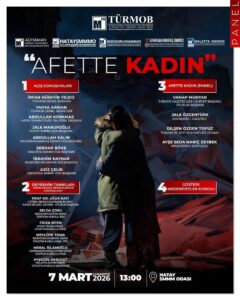 Başkan Jale Marufoğlu, Türkiye Gazeteciler Cemiyeti Başkanı Vahap Munyar’ın Moderatörlüğünde Afette Kadın Paneli saat 13.00’de Hatay Serbest Muhasebeci Mali Müşavirler odasında düzenleneceğini ifade etti.