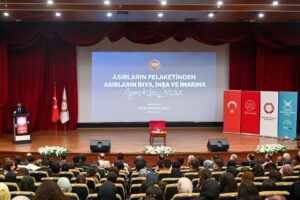 TÜGVA ve Üniversite iş birliğini değerli bulduğunu belirten Vali Masatlı, Hatay’ın yeniden ayağa kalkma sürecinin Türk tarihindeki Çanakkale ruhundan sonraki en büyük dayanışma örneklerinden biri olduğunu vurguladı. Dünyadaki afet yönetim süreçleriyle Hatay’ı kıyaslayarak, Japon uzmanların enkazın kaldırılması için 5 yıl, şehrin ayağa kalkması için ise 10 yıl süre öngördüğünü hatırlattı.