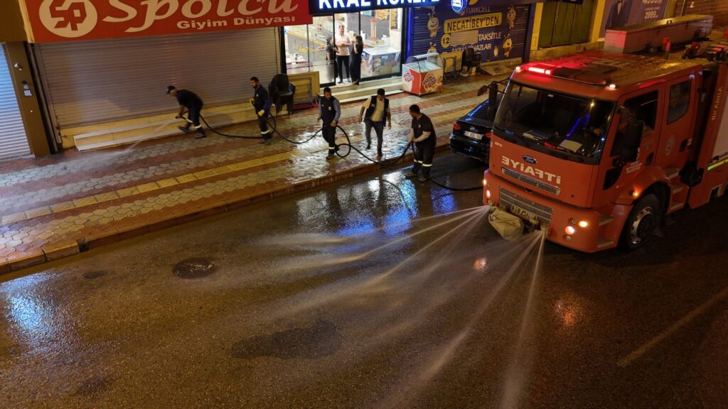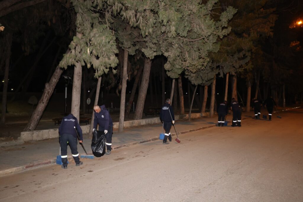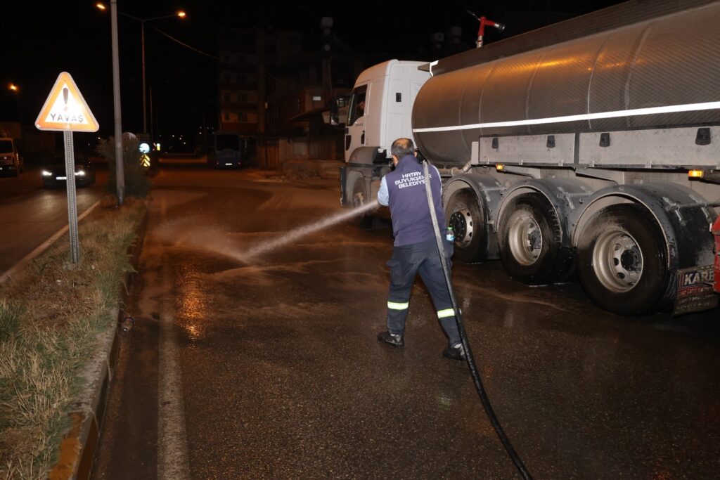 Hatay Büyükşehir Belediyesi Çevre Koruma ve Kontrol Dairesi Başkanlığı, il genelindeki ana arterler, cadde ve meydanlarda vakumlu yol süpürme araçları, arazöz ve iş makineleriyle vatandaşların bayramı temiz, sağlıklı ve estetik bir çevrede geçirmesi için gece gündüz demeden temizliyor.