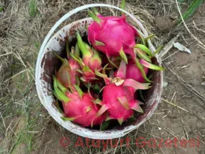 “Bu sera iki dönüm. Önce bir dönümünü ektim, meyvenin verimini güzel görünce kalan bir dönümü de bu yıl kırmızı ejder meyvesi olarak ektim. Şu anda hem beyaz hem de kırmızı türü yetiştiriyorum. Bakımını domates, biber, kavun ya da karpuz gibi yapıyoruz; ilacını, suyunu, gübresini zamanında veriyoruz. Ancak ejder meyvesi soğuğu da sıcağı da sevmeyen bir bitki. Buna rağmen iyi bir ürün alıyoruz. Geçen yıl bir dönümden bir tondan fazla mahsul aldım. Bu yıl dondan ve sıcaktan etkilendi ama yine de verim bekliyorum.”