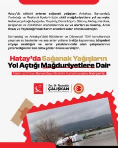 Yaşanan tabloyu “doğal afet” olarak nitelendirip geçmenin doğru olmadığını belirten Saadet Partisi Hatay Milletvekili Necmettin Çalışkan, konuyu Türkiye Büyük Millet Meclisi gündemine taşıdı.