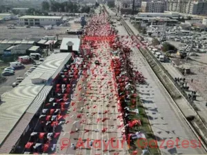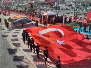 Antakya ilçesi Atatürk Caddesi Gastronomi Çarşısı önünde üzerinde gerçekleşen kutlama törenine; Hatay Valisi Mustafa Masatlı, Garnizon Komutanı Tuğgeneral Ali Mete ve Hatay Büyükşehir Belediyesi Başkanı Mehmet Öntürk’ün yanı sıra, Askeri ve Mülki erkan ile Hataylılar katıldı