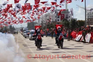 Bu arada geçit töreninde, folklor ekiplerinin yöresel oyunları kutlama coşkusuna apayrı bir renk katarken, kortej geçişiyle kutlamalara sona erdi.