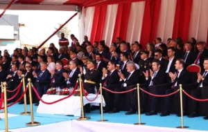 Hatay Valisi Mustafa Masatlı, Garnizon Komutanı Tuğgeneral Ali Mete ve Hatay Büyükşehir Belediyesi Başkanı Mehmet Öntürk Bayrama katılanların ve vatandaşların vatandaşların bayramlarını kutlamalarının ardından, geçit töreni saygı duruşu ve İstiklal Marşı’nın okunmasıyla başladı.