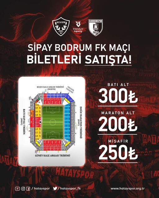 Trendyol Süper Lig’in 6. Haftasında Mersin Stadyumu’nda oynanacak Hatayspor Bodrumspor maçı biletleri satışa sunuldu.