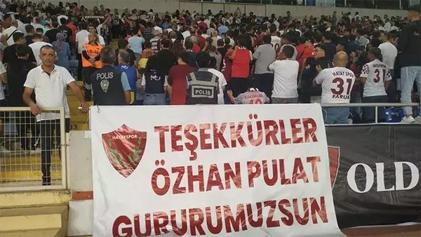 Hataysporlu taraftarlar, geçtiğimiz sezon büyük bir başarı ile takımı ligde tutan Teknik Direktör Özhan Pulat’ı unutmadı. Geçtiğimiz hafta Hatayspor’dan ayrılan Özhan Pulat için Bodrum FK maçında pankart asıldı.
