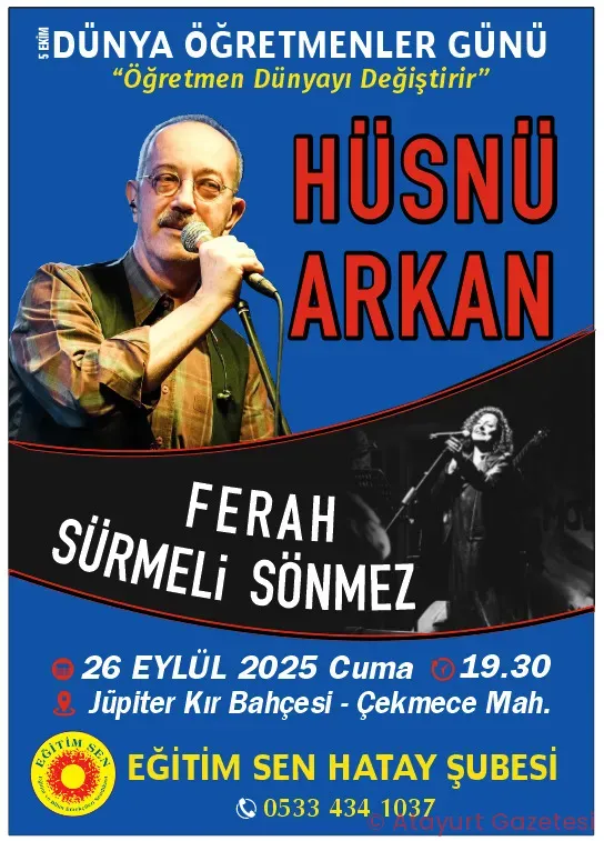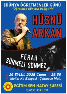 Eğitim-Sen Hatay Şubesi’nin Öğretmenler günü dolayısıyla düzenlediği Hüsnü Erkan Konseri bu akşam icra edilecek.