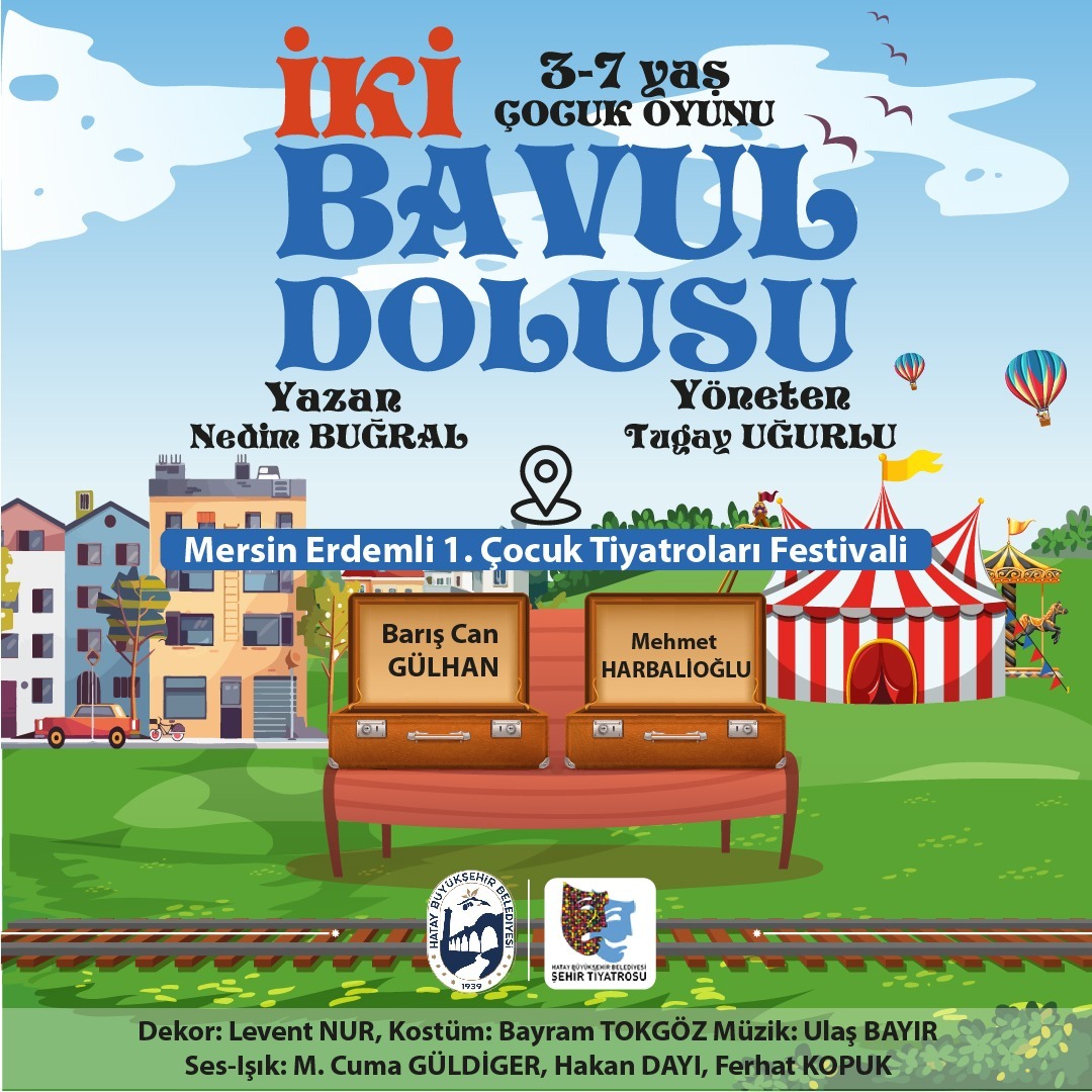 Hataylı çocuklardan alkış toplayan Şehir Tiyatrosu oyuncularının sahnelediği “İki Bavul Dolusu” adlı çocuk oyunu bu yıl ilk kez düzenlenecek olan Mersin Erdemli 1. Çocuk Tiyatroları Festivali’nde minik izleyicilerle buluşacak.