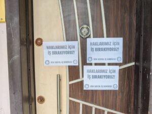 DİSK’e bağlı Sosyal-İş Sendikası çalışanları, Sendika tarafından alınan karar doğrultusunda “Haklarımız, Emeğimiz ve İnsanca Yaşam İçin Alanlardayız!”, “Taleplerimiz Yok Sayıldı, Emeğimiz Değersizleştirildi”, “Artık Susmuyoruz!” ve “Emeğimizin Karşılığını Alana Kadar Mücadeleye Devam!” şiarlarıyla bugün ülke genelinde iş bırakma kararı alarak greve gitti.