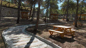 İskenderun Numune Mahallesi’nde doğal mesire alanı olarak hazırlanan “İskenderun Orman Parkı ve Sosyal Tesis” projesinin sona yaklaştığını belirten Hatay Büyükşehir Belediyesi Park Bahçe ve Yeşil Alanlar Dairesi Başkanlığı, alan içerisinde oyun parkı, fitness spor alanı, oturma kamelya alanı, barbekü, wc, mescit, yöresel ürün satış alanı ve kafeterya gibi donatıların bulunduğunu aktardı.