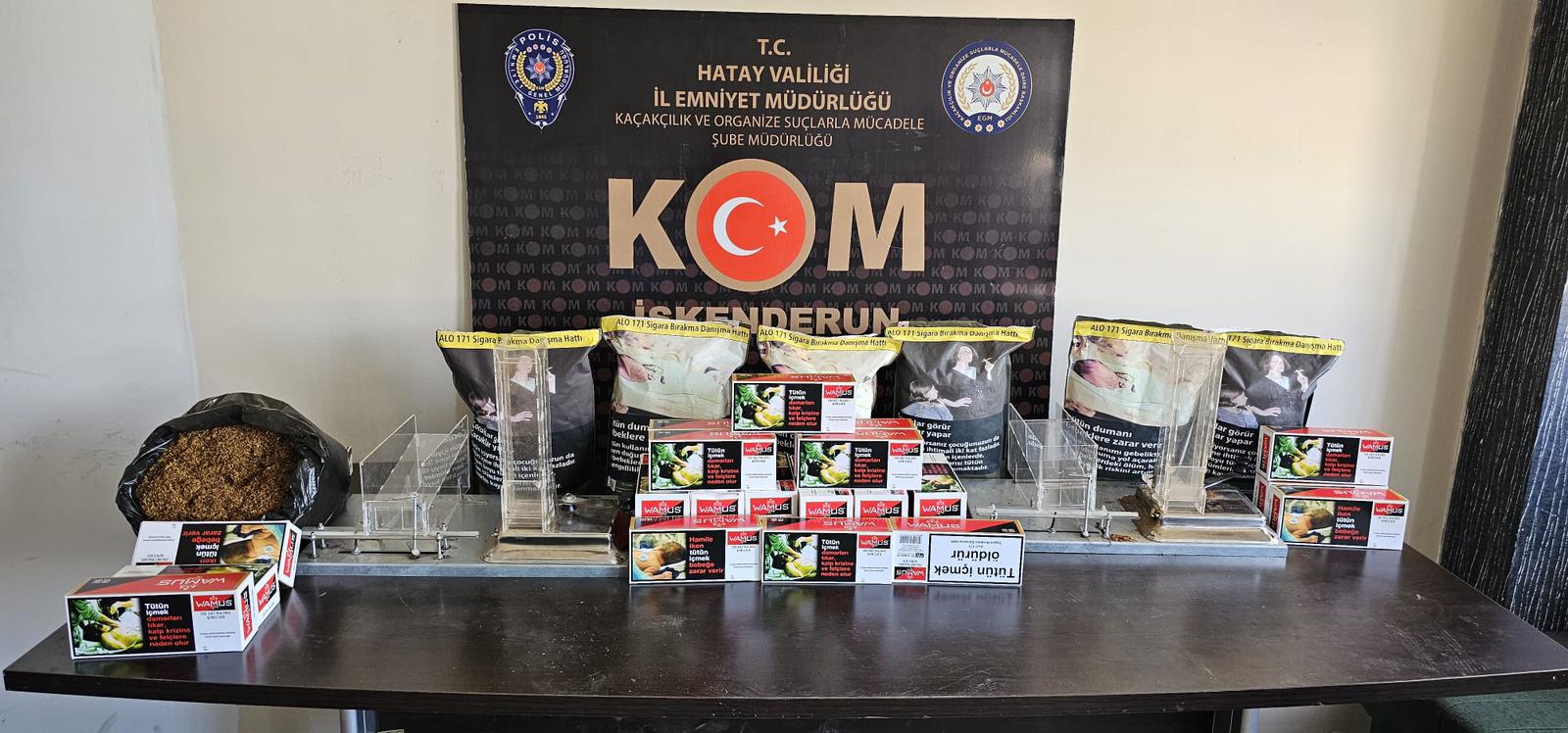 Hatay Valiliğinden yapılan açıklamada, Hatay Emniyet Müdürlüğü görevlilerince kaçakçılık olaylarına yönelik yapılan çalışmalar kapsamında 15.03.2024 tarihinde İskenderun Akçay mahallesinde bulunan bir ikamette yapılan aramada; 2 adet sigara sarma makinası, 7400 dal boş makaron ile 13 kg. kıyılmış tütün ele geçirildiği belirtildi.
