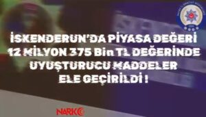 Hatay’ın İskenderun ilçesinde piyasa değeri 12 milyon 375 bin liralık İki parça halinde toplam 2.450 gram Sentetik Kannabinoid Ham Maddesi ile 1 Kilo 250 gram Kokain Ele geçirildiği belirtildi.