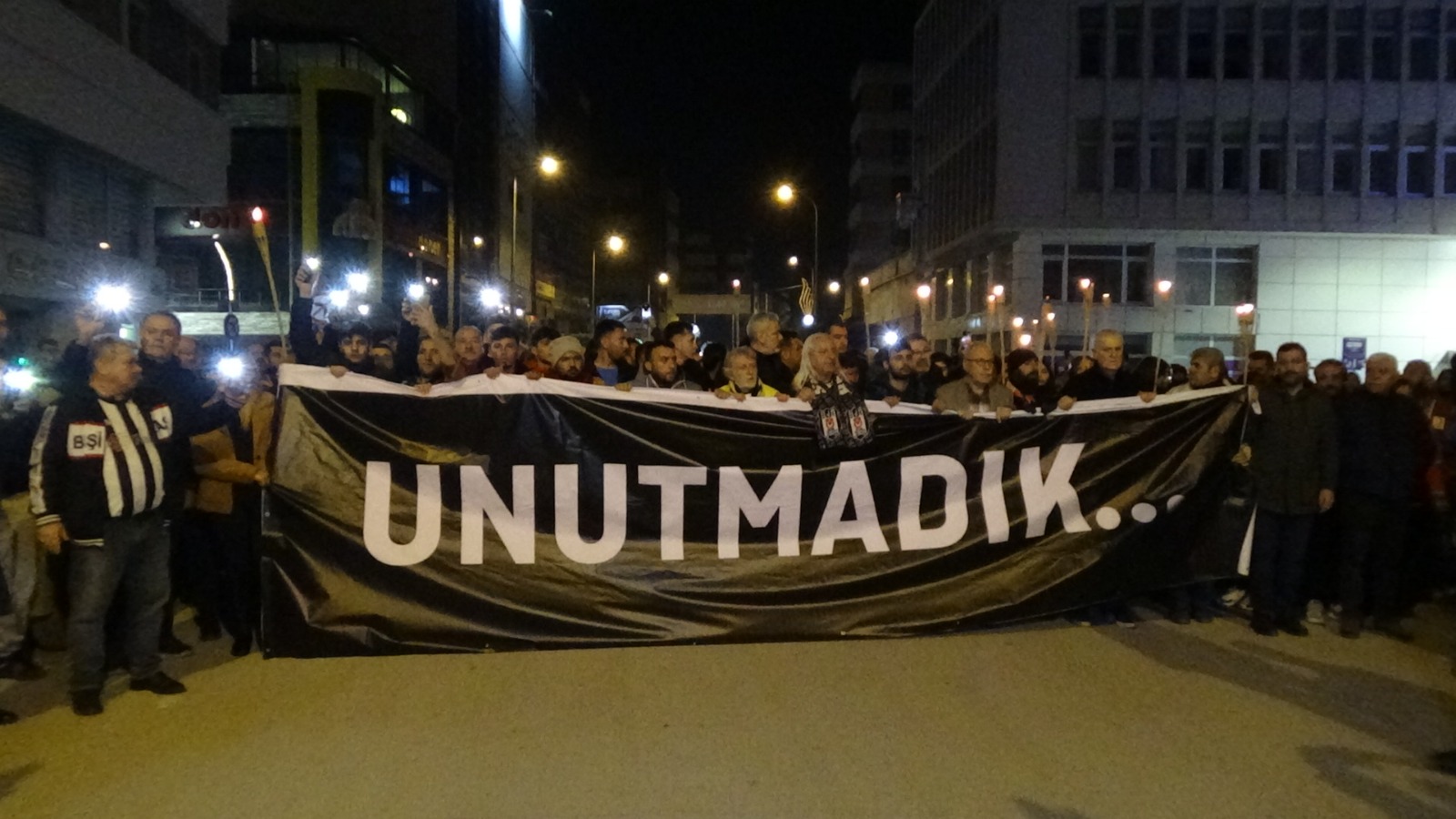 Deprem Şehitleri için yürüyüş için İskenderun Kaymakamlığı önünde saat: 03.30’da toplanmasından sonra Şehit Pamir Caddesi üzerinden, depremin olduğu saat olan 0.4.17’de PAC meydanına gelindi. Yürüyüşte sadece bir döviz taşındı. “Unutmadık” dövizinin arkasında binlerce insan meşalelerle yürüdüler.