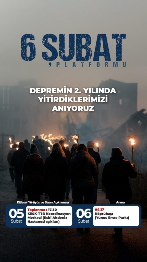 KESK 4.17’DE YUNUS EMRE PARKINDA Atayurt Gazetesi tarafından 5 Şubat 2025 yayınlandı / 05 Şubat 2025 19:12 güncellendi PaylaşSesli Oku0Beğen 0 Yorum+ Yazı Boyutunu Büyüt- Yazı Boyutunu KüçültKESK Asrın felaketinin 2. Yıldönümünde Akdeniz Mahallesindeki törenden ayrı olarak sabah saat 4.17’de Yunus Emre Parkında toplanacak.Valilik binası yanındaki Yunus Emre Parkında toplanacak KESK üyeleri köprüye doğru yürüyecekler.Atayurt GazetesiYorumlar kapatılmıştır.