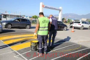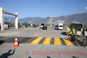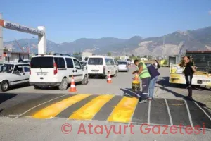 Kent genelinde bulunan konteyner kent sakinlerinin taleplerine kulak vermek ve eksiklerini gidermek için çalışma yapan Hatay Büyükşehir Belediyesi  Ulaşım Dairesi Başkanlığı ekipleri, İskenderun ilçesinde bulunan Kore Konteyner Kent önünde bulunan ana yolda oluşacak trafik kazalarını önlemek adına çalışma gerçekleştirdi.