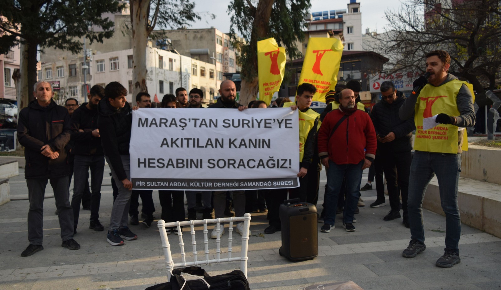 Pir Sultan Abdal Kültür Derneği Samandağ Şubesi önderliğinde “Maraş’tan Suriye’ye Akıtılan Kanın Hesabını Soracağız.” Şiarıyla Maraş’ın 47. yıl dönümü anması Abdullah Cömert Alanında basın açıklamasıyla yapıldı.