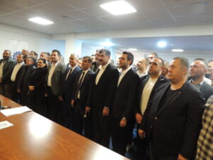 Toplantıya Hak İş Sendikasına bağlı Hizmet İş Sendikası İskenderun Şube Başkanı Mehmet Yetim ve Vatan Partisi Hatay İl Başkanı Sadık Karakaş, il yöneticileri ve İskenderun ilçe yöneticileri katıldılar.