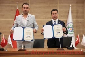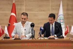 İmza töreninde konuşan Defne Belediye Başkanı Halil İbrahim Özgün, 6 Şubat depremlerinin en büyük yıkımını yaşayan merkez ilçelerden biri olarak Defne’nin hâlâ yardımlaşma ve dayanışmaya ihtiyaç duyduğunu vurgulayarak, “Bugün atacağımız imza, yalnızca bir iş birliği değil; Cumhuriyet şehri Hatay’a, Atamızın ‘şahsi meselem’ diyerek sahiplendiği bu topraklara uzanan güçlü bir kardeşlik elidir” dedi.
