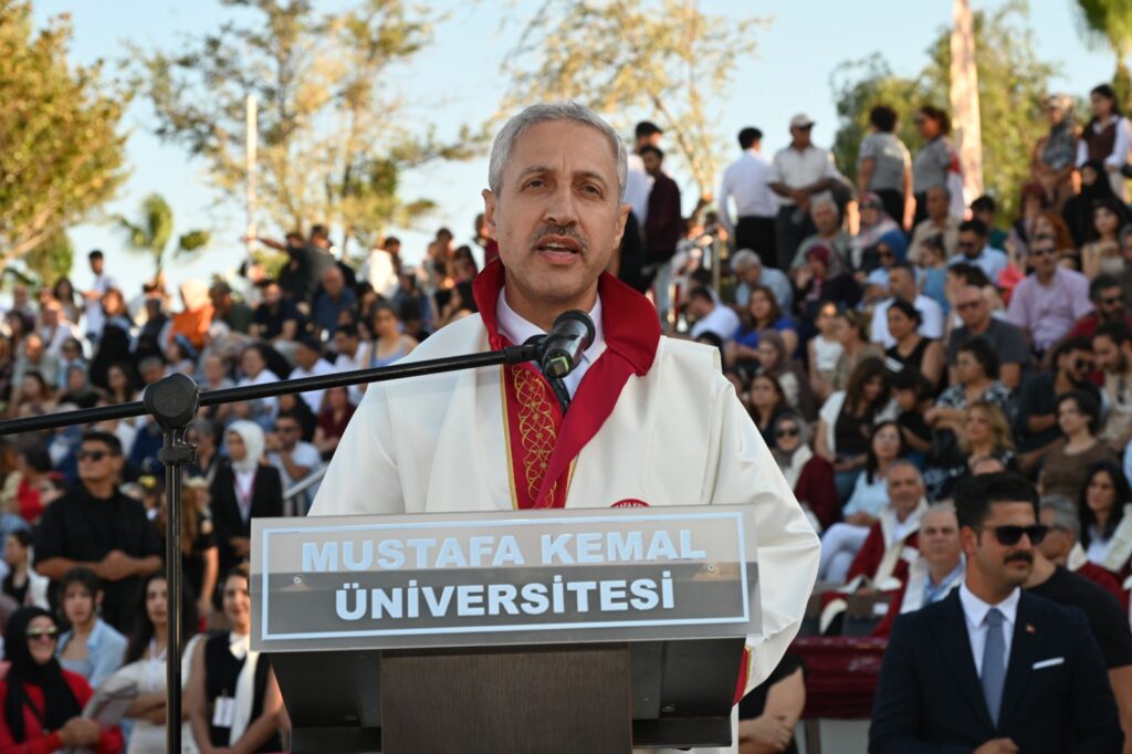 Hatay Valisi Mustafa Masatlı ise konuşmasında, mezunların “Bilgiyle donanmış, vicdanla yoğrulmuş ve sorumluluk bilinciyle yetişmiş gençler” olarak yarınları inşa edeceğini belirtti.