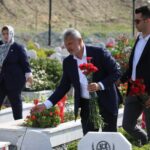 Program, Narlıca Deprem Şehitliği ziyaretiyle devam etti. Rektör Eren şehit mezarlarına karanfiller bıraktı ve ziyarete gelen şehit yakınlarıyla sohbet etti.