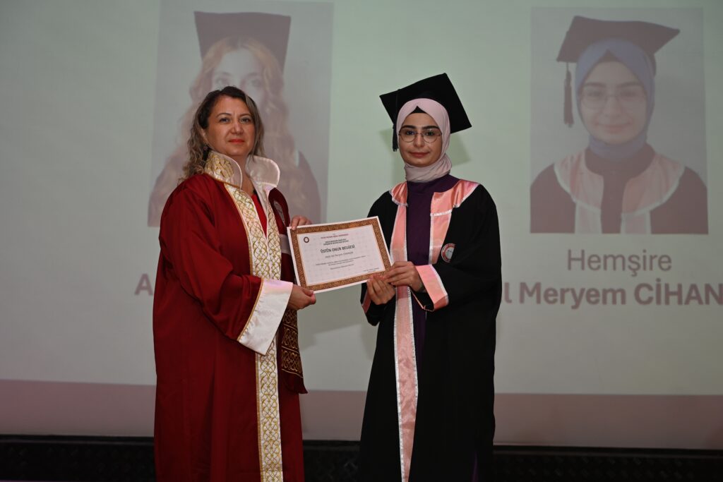 Konuşmaların ardından Acil Yardım ve Afet Yönetimi, Fizyoterapi ve Rehabilitasyon ile Hemşirelik bölümlerinden mezun olan öğrencilere mezuniyet belgeleri takdim edildi.
