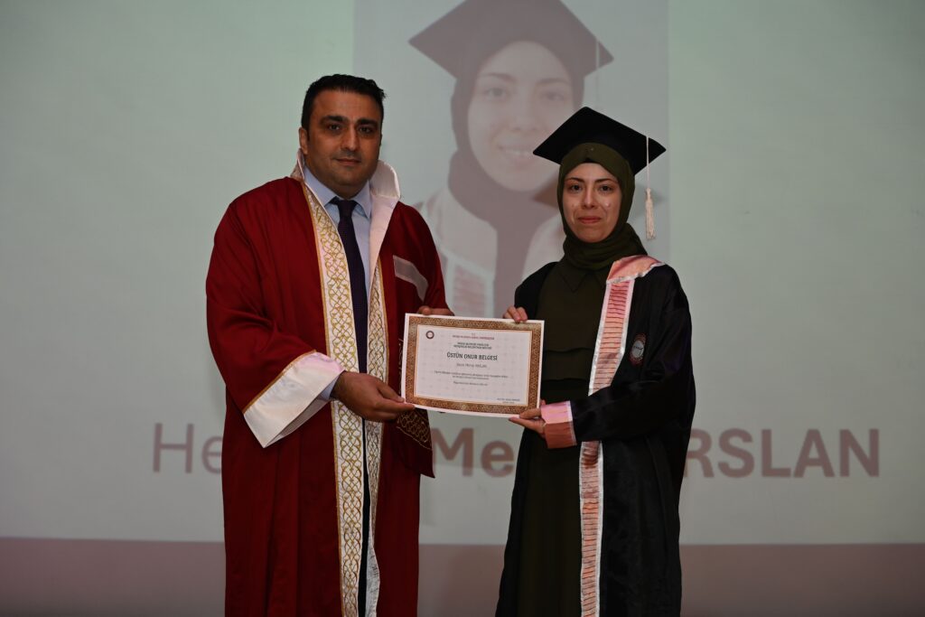 Törenin devamında Sağlık Bilimleri Fakültesi birincisi Hemşirelik Bölümü öğrencisi Merve Aslan, mezun öğrenciler adına bir konuşma yaparak belgesini Rektör Vekili Prof. Dr. Mehmet Turan’ın elinden aldı.